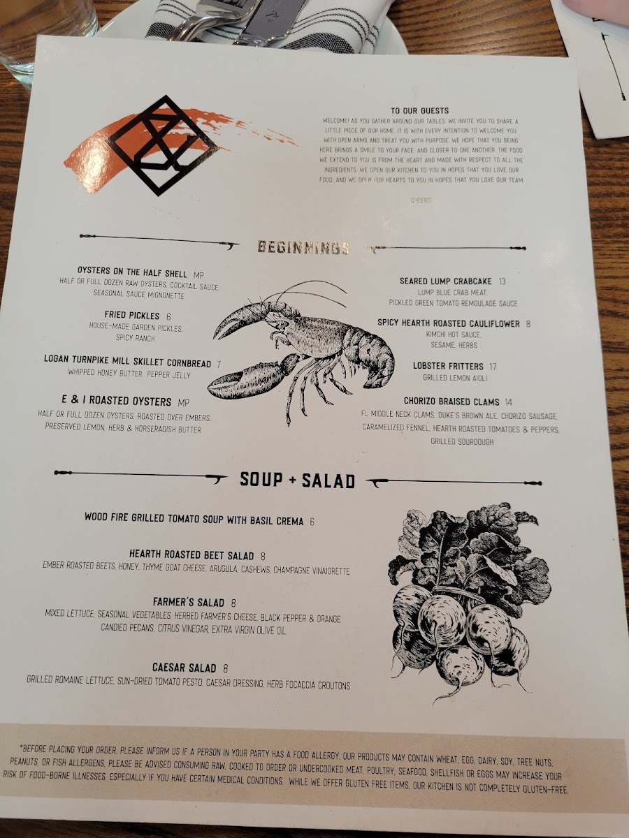 Ember roasted beets, honey, thyme goat cheese, arugula, cashews, champagne vinaigrette